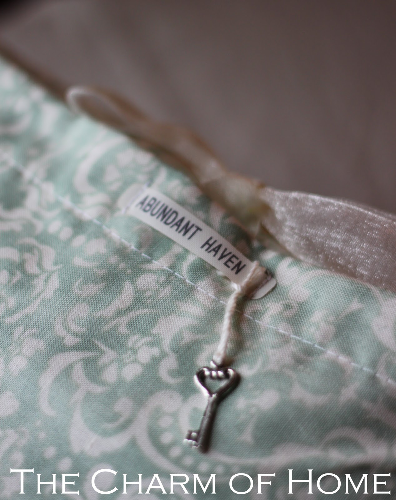 Attached to each Abundant Haven pillow is a vintage key charm....a reminder to "open every door" to peace and abundance in your home.