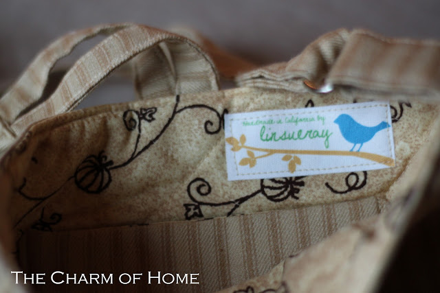 My bag also had a cute contrasting lining, a pocket, and her "handmade by linsueray" tag.