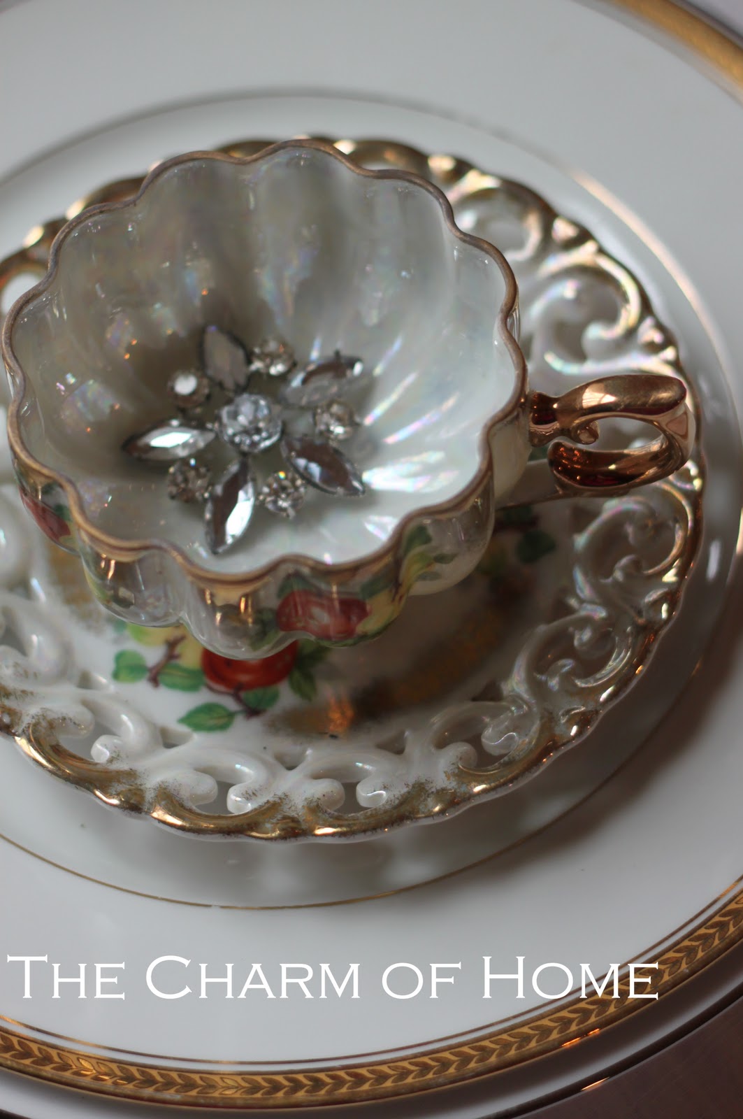 Martha even included a lovely piece of vintage bling with my teacup that I wore on my lapel on Christmas Eve.  She also has an amazing collection of vintage costume jewelry.  Check out her blog too, you'll be glad you did.